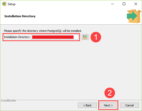 Step 3. Specify installation folder, choose your own or keep the default folder suggested by PostgreSQL installer and click the Next button