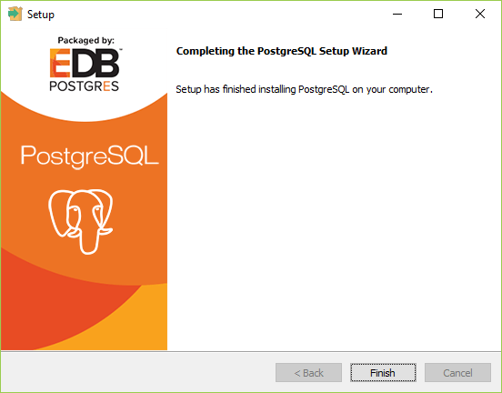 Step 10. Click the Finish button to complete the PostgreSQL installation.