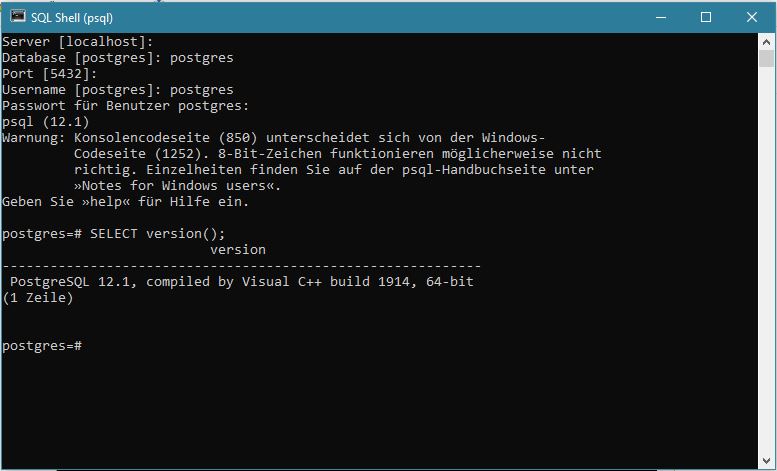 You can find it by searching “psql” from the windows menu. The psql window command line will display.